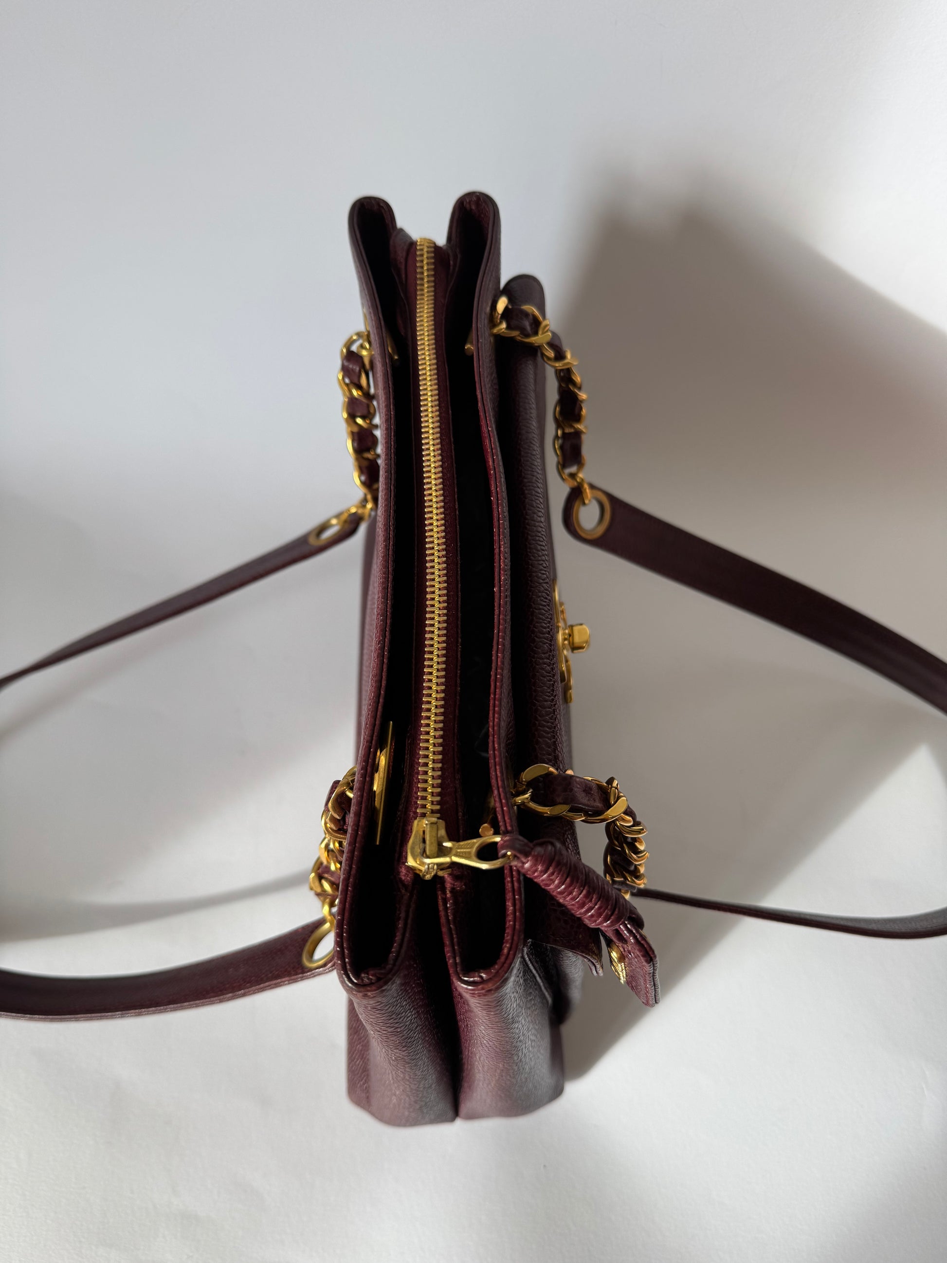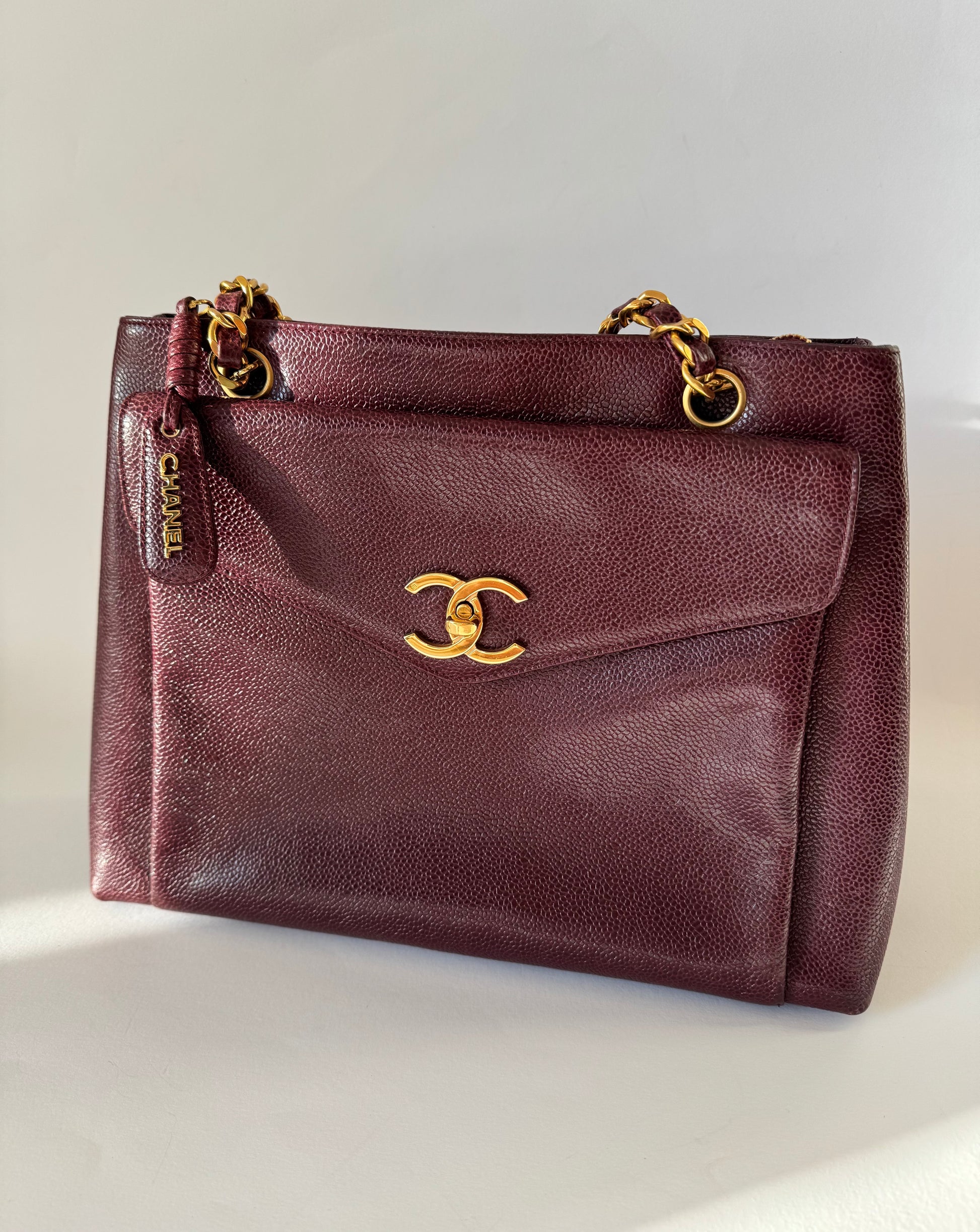 Vintage Chanel Shoulder Bag in Caviar leather crafted in bordeaux Β caviar leather, captivates with its sophisticated allure.